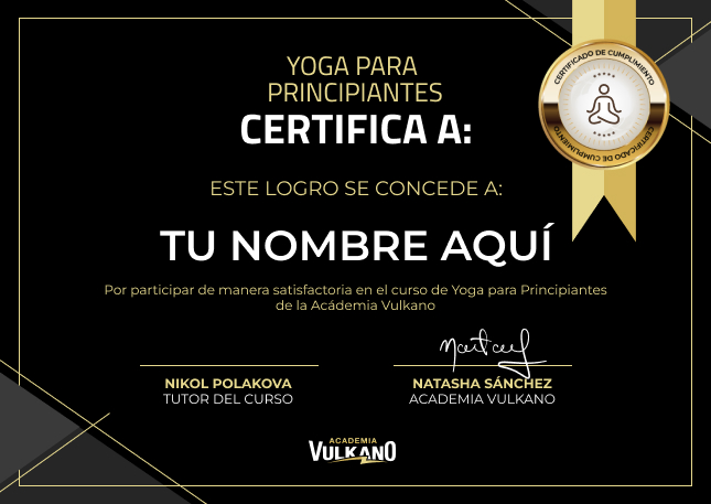 Este curso ha cambiado mi vida (para bien) los beneficios los empece a notar desde el primer día, cuando realmente compruebas lo bien que va es cuando la practica se convierte en habitual. Nikol enseña las posturas y sus beneficios de forma fácil. Poderlo practicar en casa, paso a paso ha facilitado mucho las cosas y el grupo de apoyo es muy gratificante. ¡Muchas Gracias!